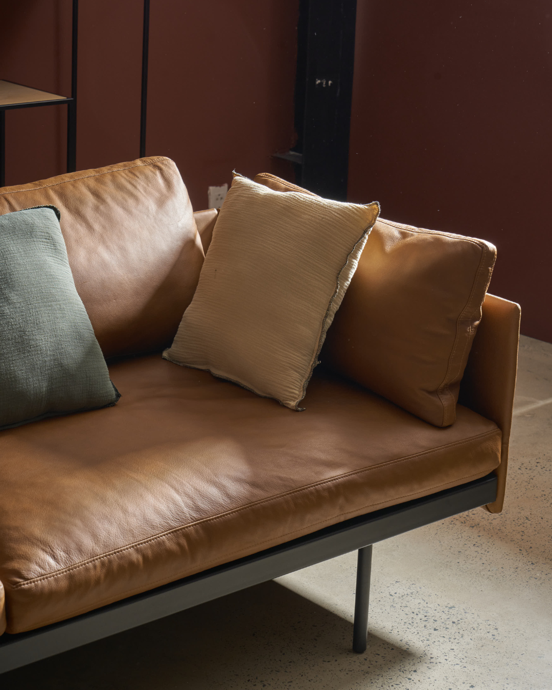 Những chiếc đệm thả lỏng một cách tự nhiên tạo nên sự tương phản với phần tay vịn thon gọn, sắc nét, tất cả được nâng đỡ bởi khung thép gọn gàng, mang lại tổng thể thanh lịch kín đáo nhưng đầy cuốn hút./ Casually slack cushions contrast with super-sleek arms, sitting on a tidy steel base for an effect that is loaded with low-key elegance.