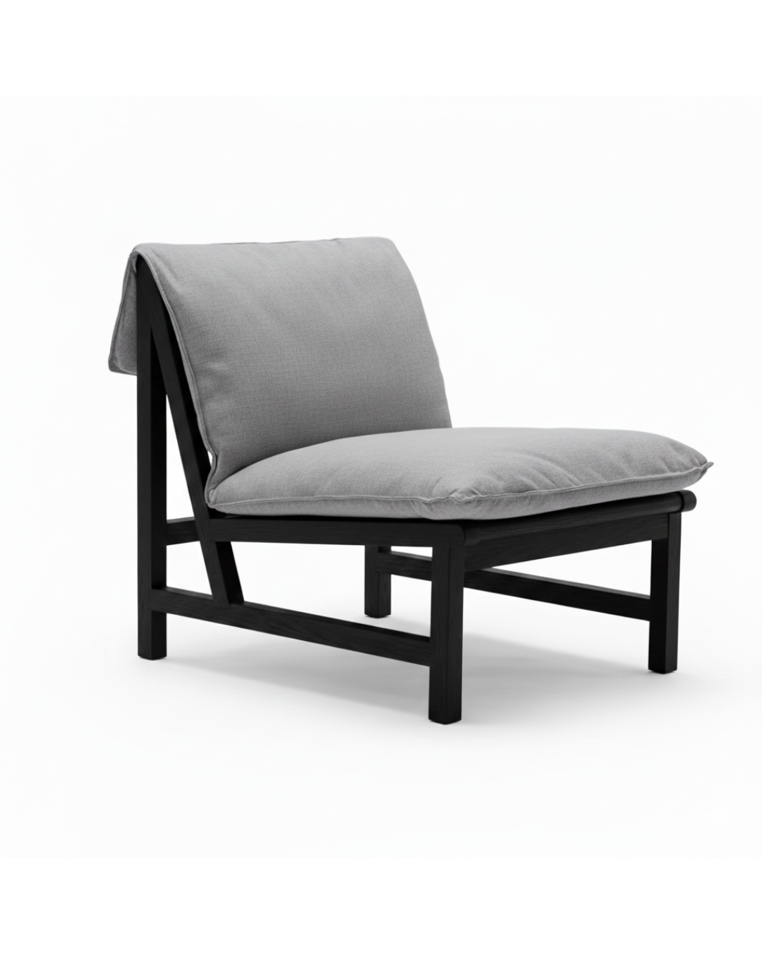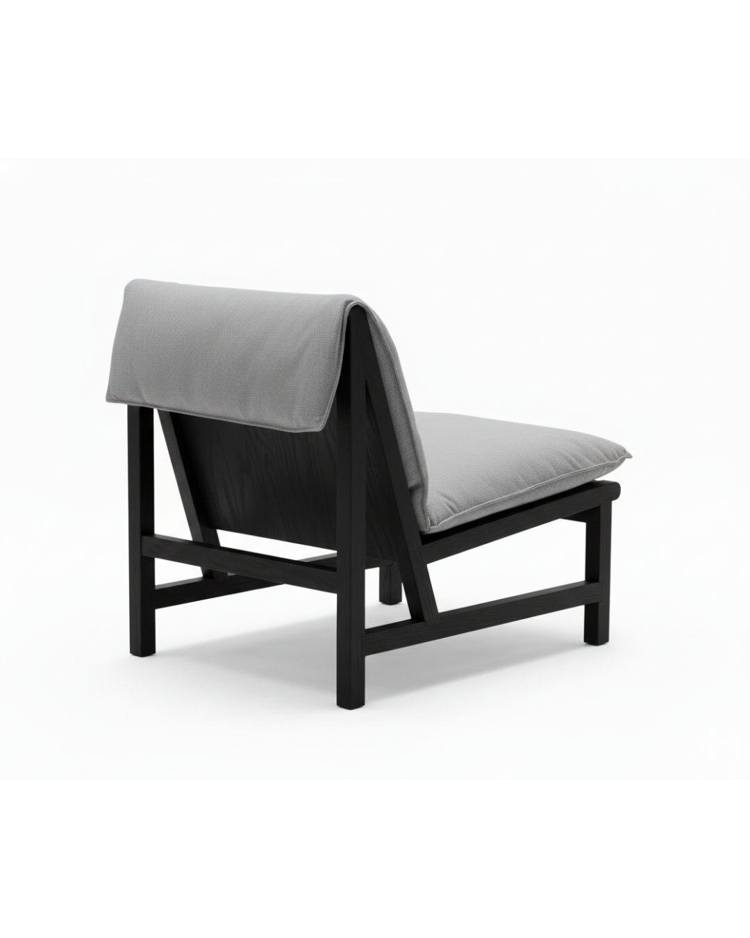 Khung gỗ mang dáng vẻ tối giản, lộ kết cấu, tạo sự tương phản với đệm kiểu futon mềm và thả lỏng, đặt tự do trên hệ dây đai dệt chịu lực. Gối tựa lưng phía sau có thể lật ra phía trước để tăng thêm độ nâng đỡ. Vỏ đệm có thể tháo rời, thuận tiện cho việc vệ sinh/ The stark skeletal form of the wooden frame contrasts with the slack futon-style cushion , which sits loosely on top of woven seatbelt webbing supports.