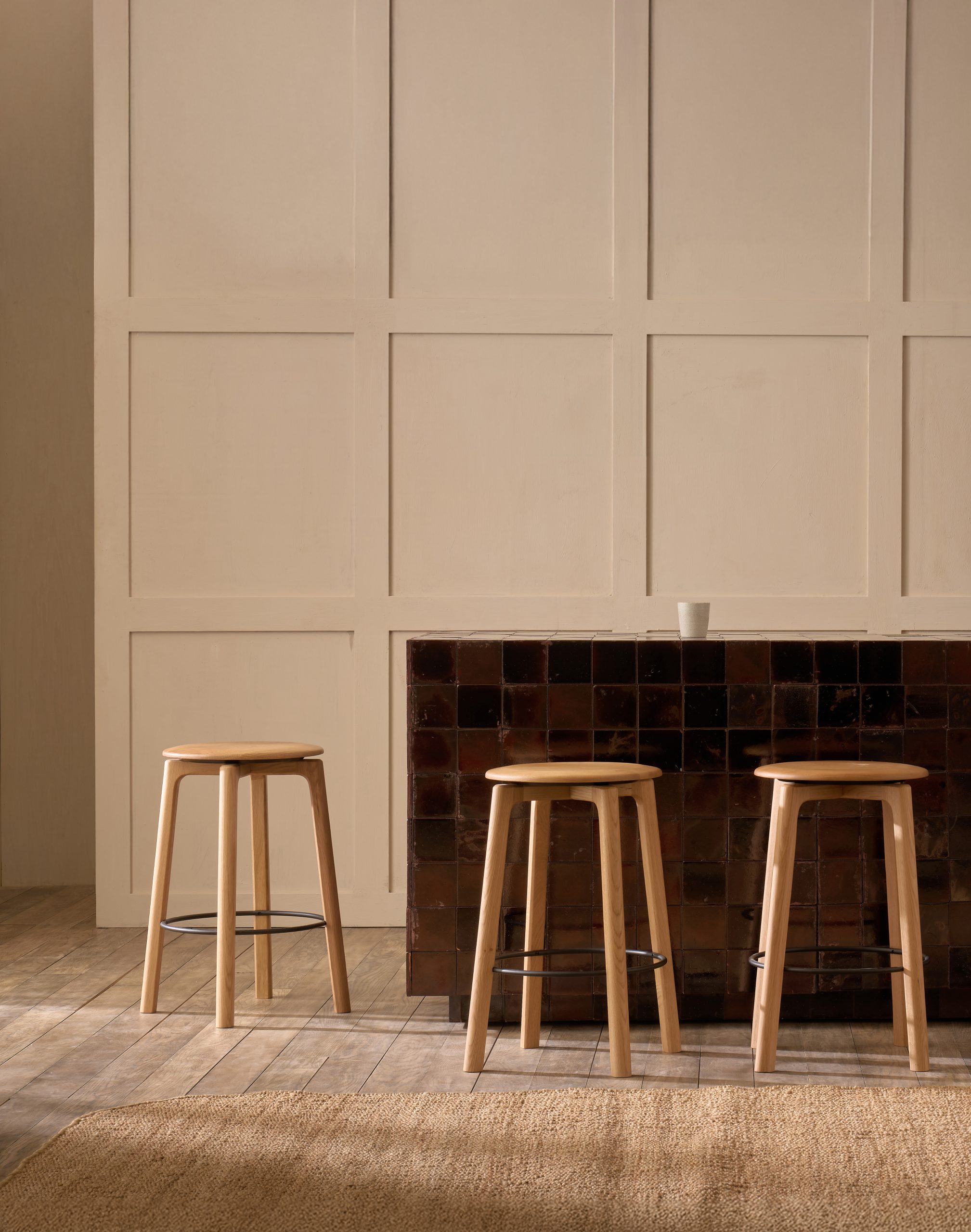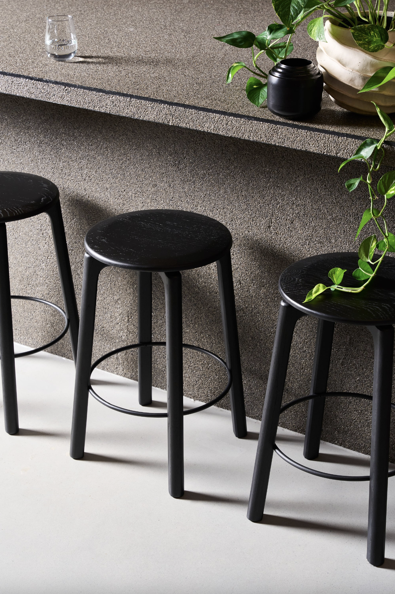 “Kiến trúc bê tông mang tính biểu tượng tại thủ đô Canberra của Úc đã truyền cảm hứng cho dòng ghế đôn Glide. Những hình khối hình học bo tròn, mạnh mẽ tương phản với các khoảng trống âm, tạo nên cảm giác kịch tính và vững chãi/ The iconic concrete architecture found in Australia’s capital city of Canberra provided inspiration for the Glide stools. Bold, rounded geometric forms contrast with negative spaces to create a sense of drama and solidity.