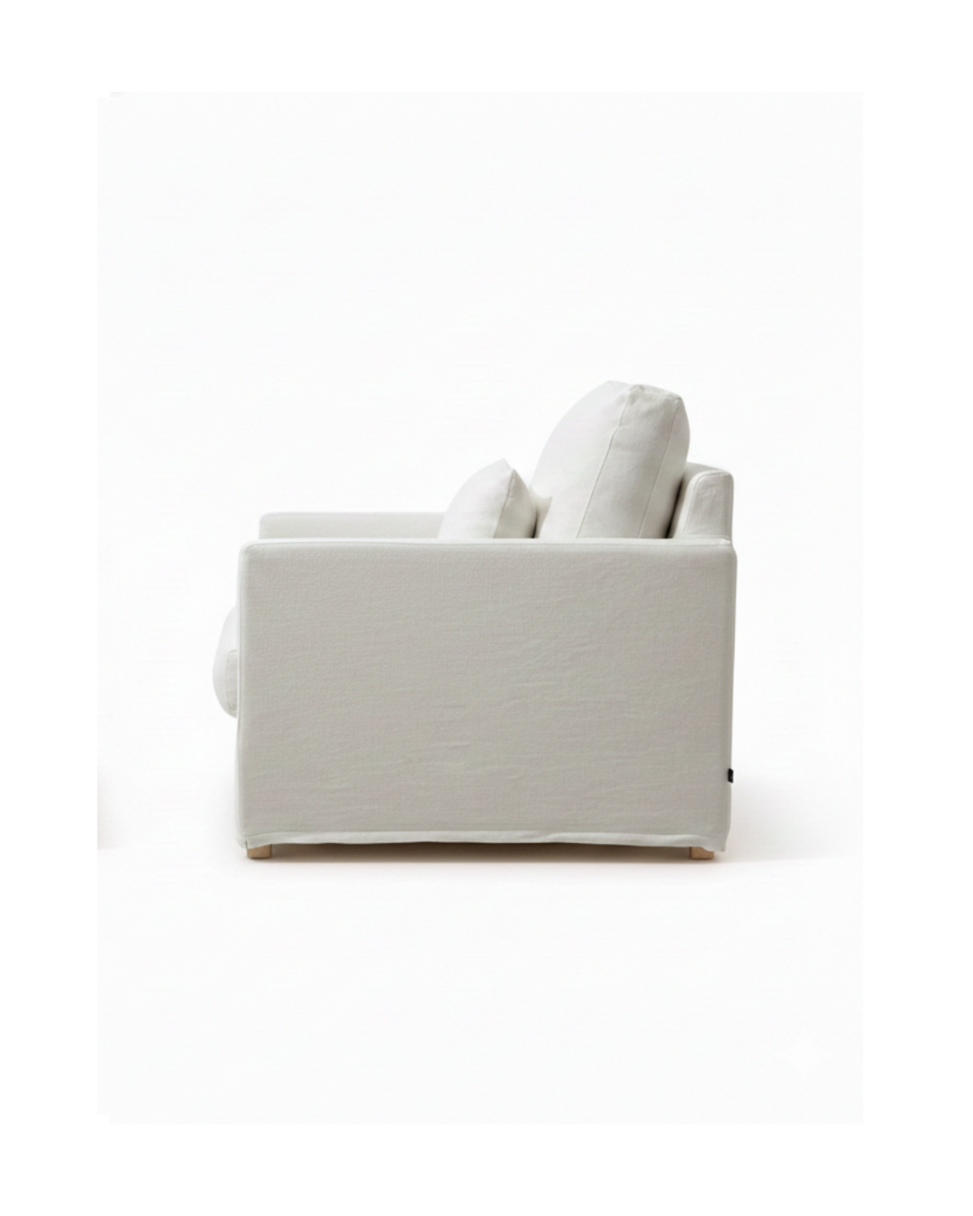Sofa Island mang phong cách ven biển cổ điển. Tay ghế mảnh kết hợp với bề rộng chỗ ngồi rộng rãi tạo nên cảm giác vừa thanh lịch vừa thoải mái. Lớp vỏ bọc rời gợi nhớ đến những ngôi nhà bên bờ biển và những mùa hè dài bất tận. Phần đệm ngồi dài liền mạch mời gọi bạn thả mình thư giãn một cách thư thái/ The island sofa is classic coastal. Thin arms combined with generous seating width create an elegant yet casual mood. Its loose-fitting slip cover speaks of the beach house and long summers. The long single-seat cushion invites languorous lounging.