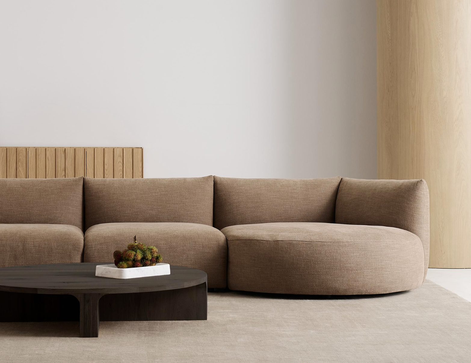 Những đường cong mềm mại, hình khối hữu cơ phi tuyến tính và dáng lưỡi liềm là những yếu tố tạo nên cá tính của sofa Slipper. Gợi nhắc phong cách ngồi thấp, thư giãn đặc trưng của thập niên 1970, thiết kế toát lên cảm giác êm ái, mời gọi ngay từ ánh nhìn đầu tiên — trước cả khi bạn thả mình vào phần đệm memory foam dày dặn. Hệ module linh hoạt cho phép đa dạng cách sắp đặt, dễ dàng thích ứng với nhiều không gian khác nhau/ Soft curves, non-linear organic forms and crescent shapes are the elements that inform the Slipper sofa’s character. Evoking the low, lounging styles of the 1970s, there is an unmistakable aura of comfort that welcomes, even before you sink into the generous memory-foam seating. Multiple modules offer flexibility in configurations to adapt to a variety of spaces.