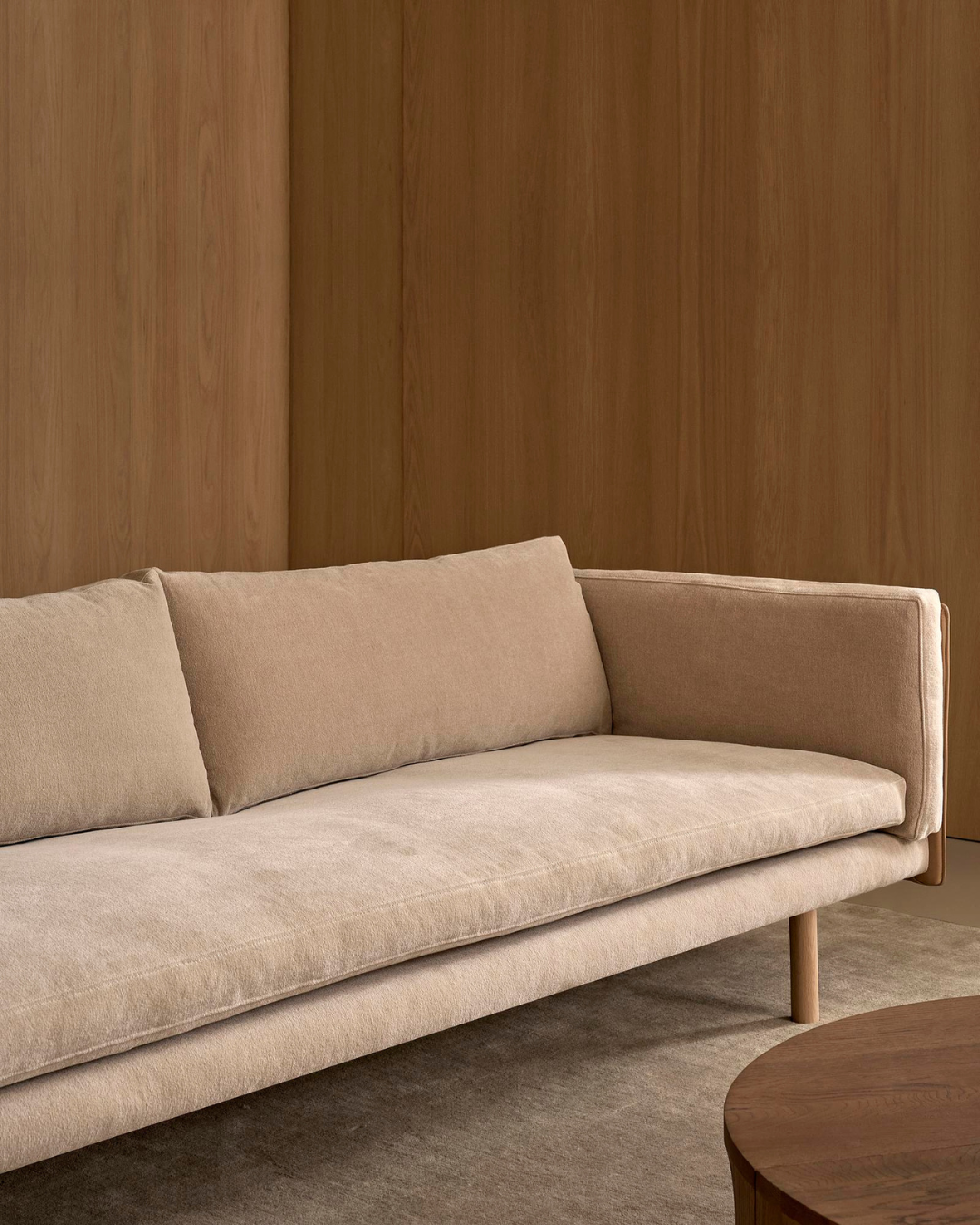 Thanh lịch và thư thái với tỷ lệ mảnh mai cùng cảm giác nhẹ nhàng về mặt thị giác. Những chiếc đệm nhồi lông vũ mềm mại, êm ái được đặt gọn bên trong khung dáng mảnh, thẳng và tuyến tính; một thiết kế giản dị, gợi nhắc và phát triển từ ý tưởng từng được Børge Mogensen khai phá/ Elegant and relaxed with slim proportions and a visual lightness. Soft, welcoming feather-filled cushions nesting inside a thin, straight linear frame; an unpretentious design, riffing on a concept first explored by Borge Mogensen.