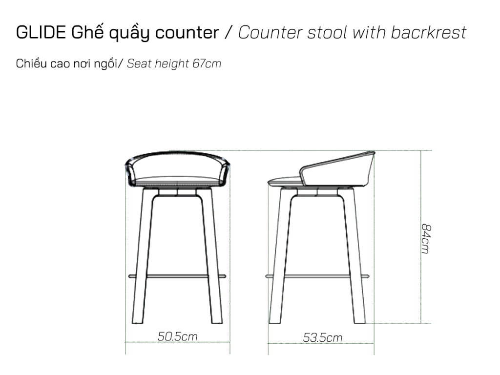 Chất liệu Solid oak base with plywood seat shell, high-density foam.
