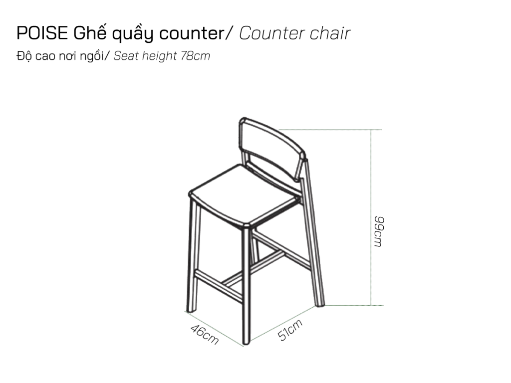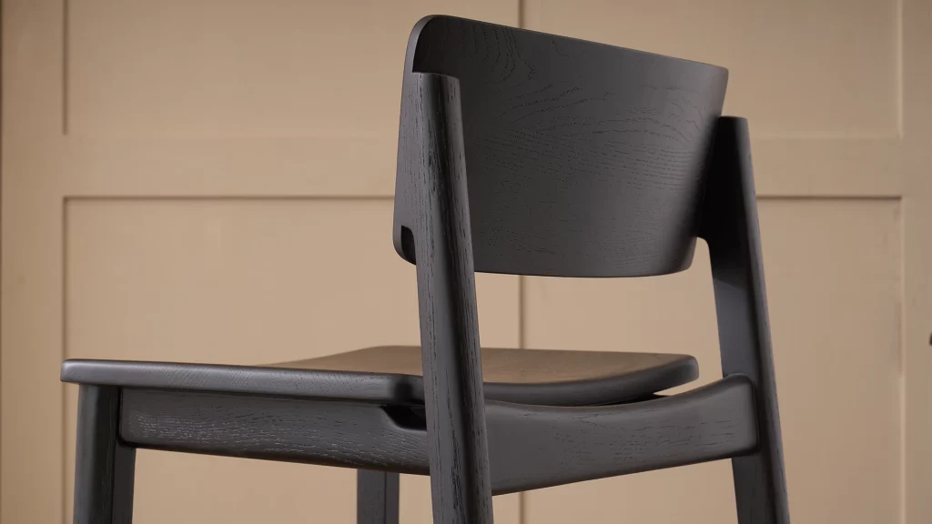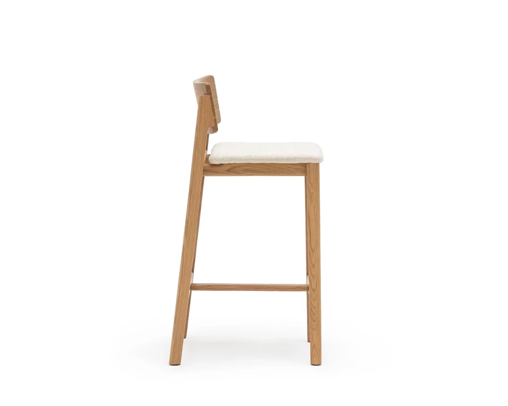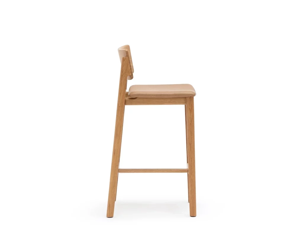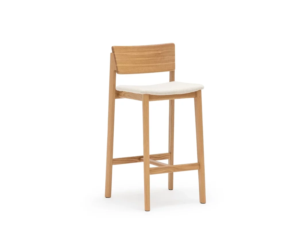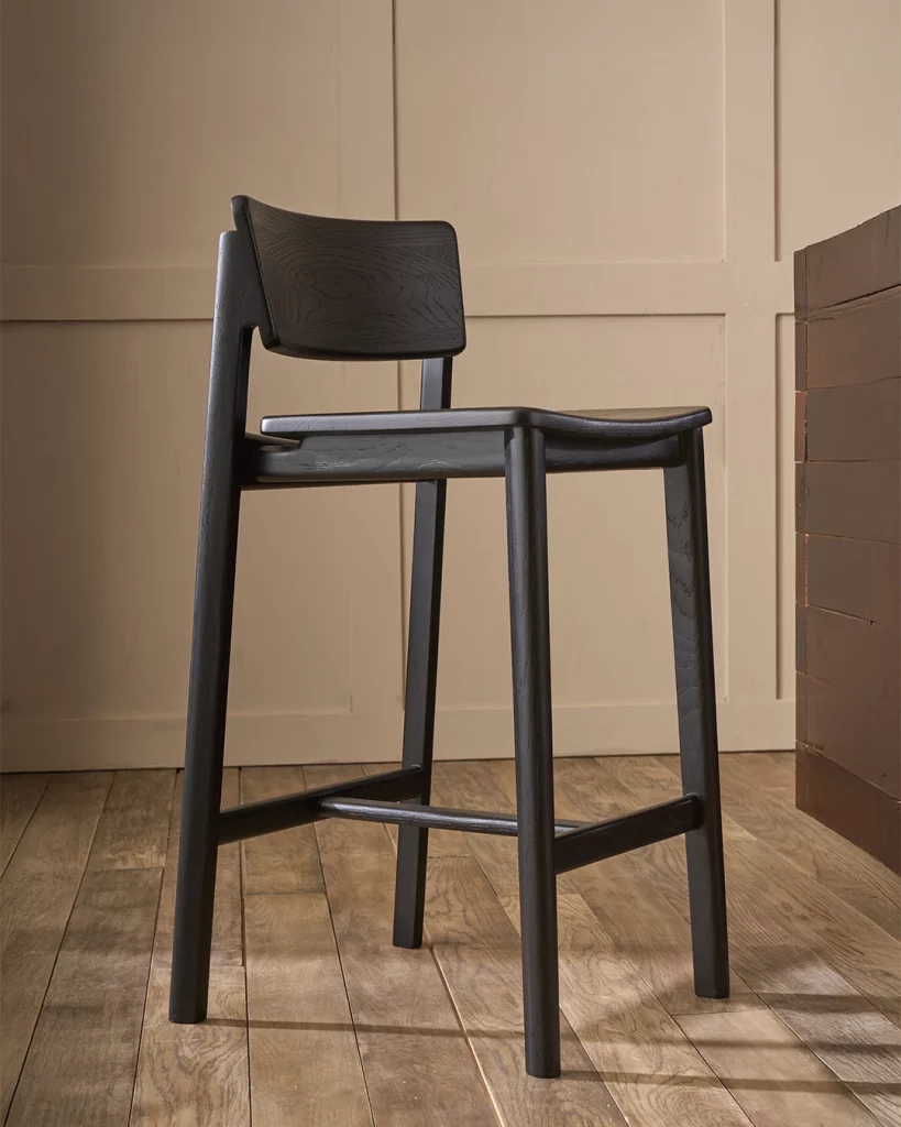 Poise stool is offered in both counter height and bar height, both with a choice of either solid oak seat, or upholstered seat.