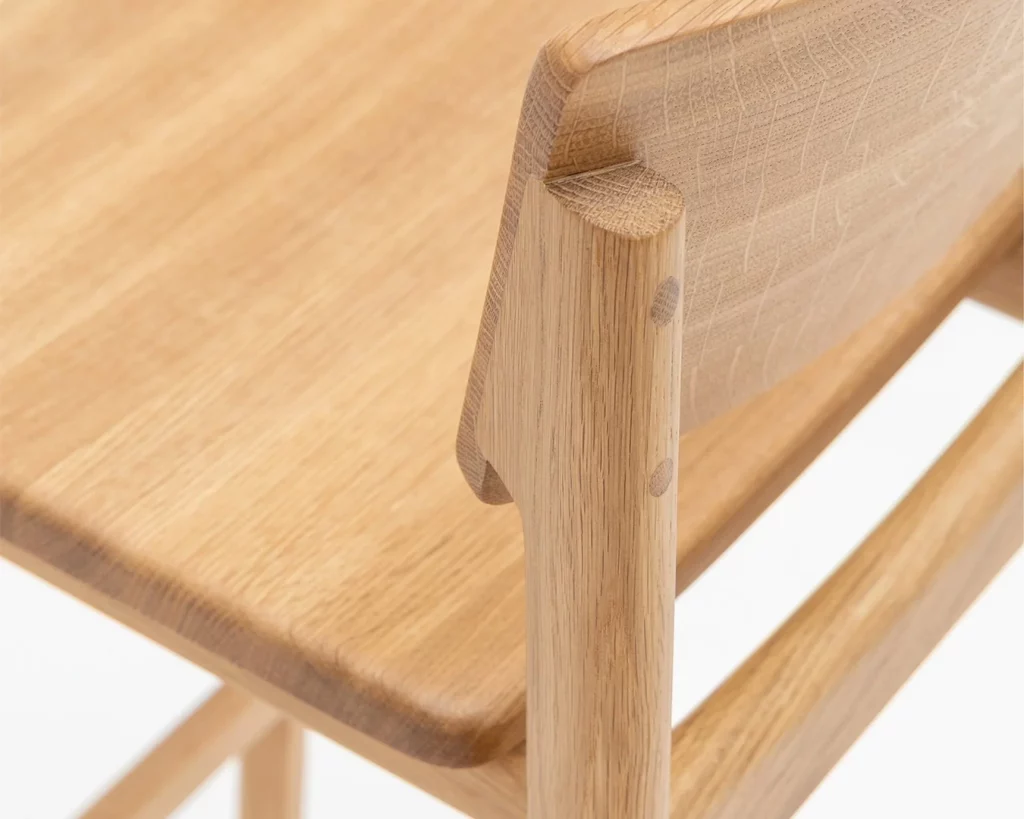 Upholstered seat version: Solid oak with plywood seat panel, high-density foam.