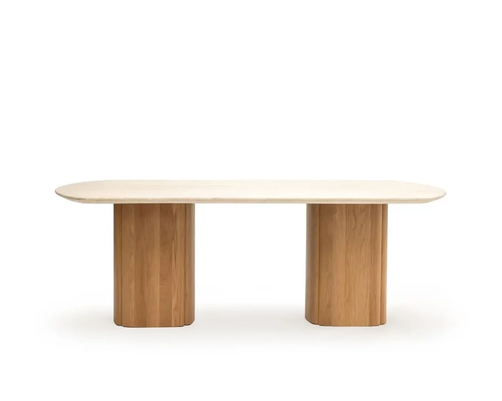 Tathra is a place for gatherings, conversation, and play. A quiet statement piece with no vulgarity or distractions. The soft sculpted forms of the pedestal are reminiscent of ancient tree trunks, while the stone top has soft edges as if polished by the ocean - a true meeting of the elements. Available in round and elongated.