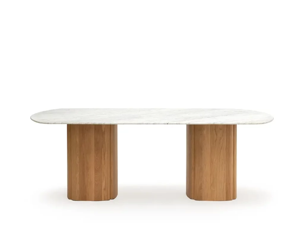 Chất liệu Base: Solid Oak Top: Carrara marble, Nero Perlato marble, travertine, or solid Oak.