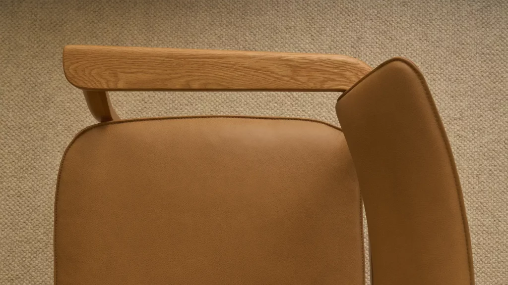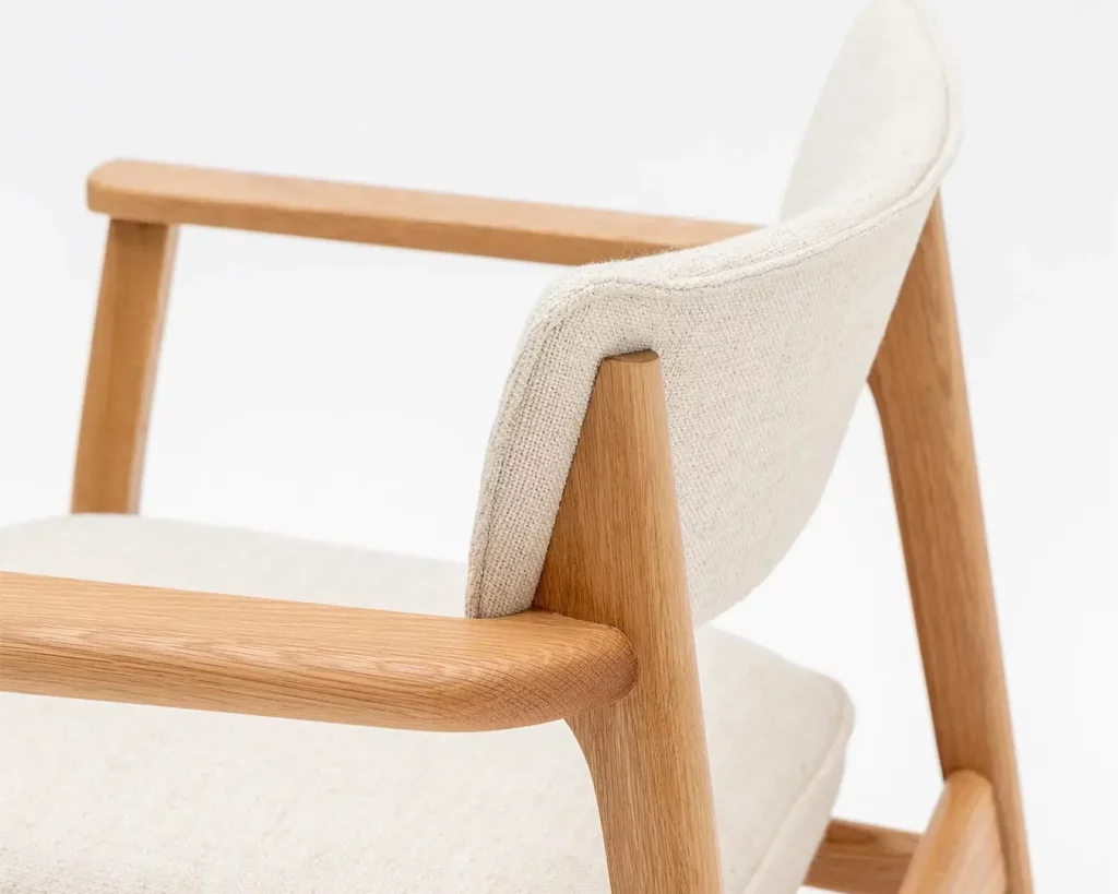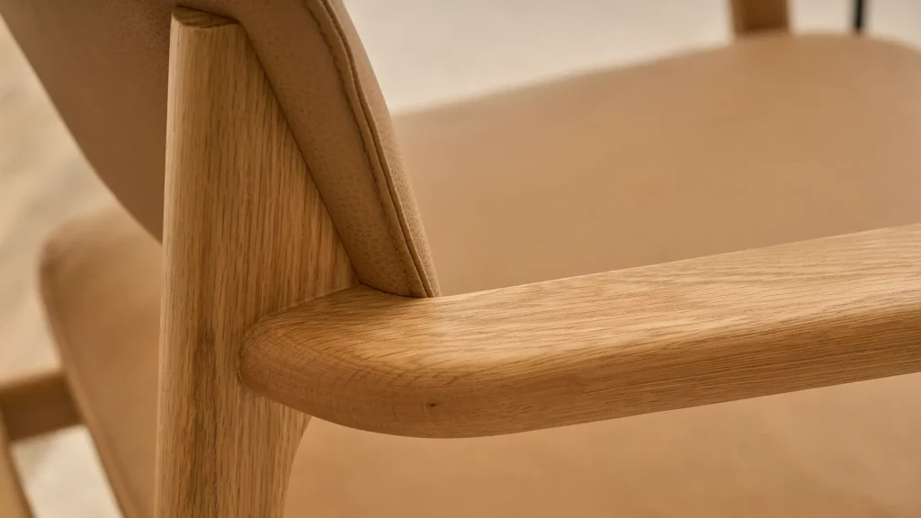 Subtle wood-craft details, such as those featured on the Poise chair, are a hallmark of the thoughtful design language of Patryk Koca.