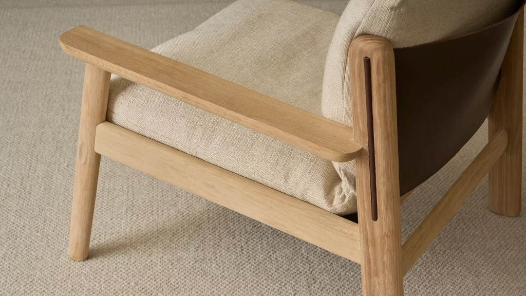 Solid oak frame sprung with seat-belt webbing