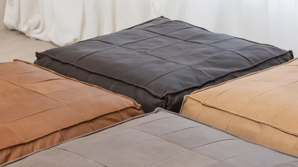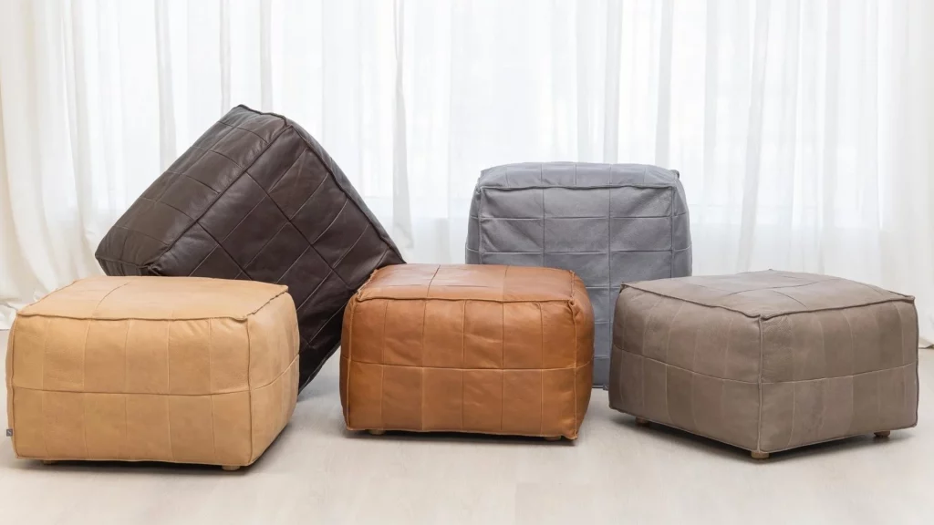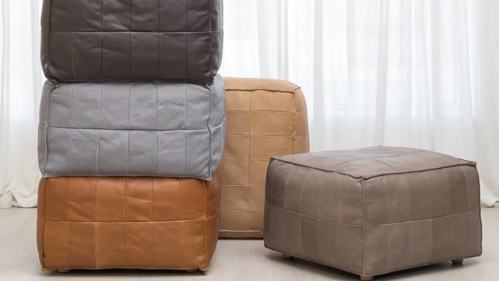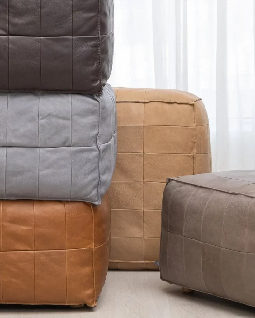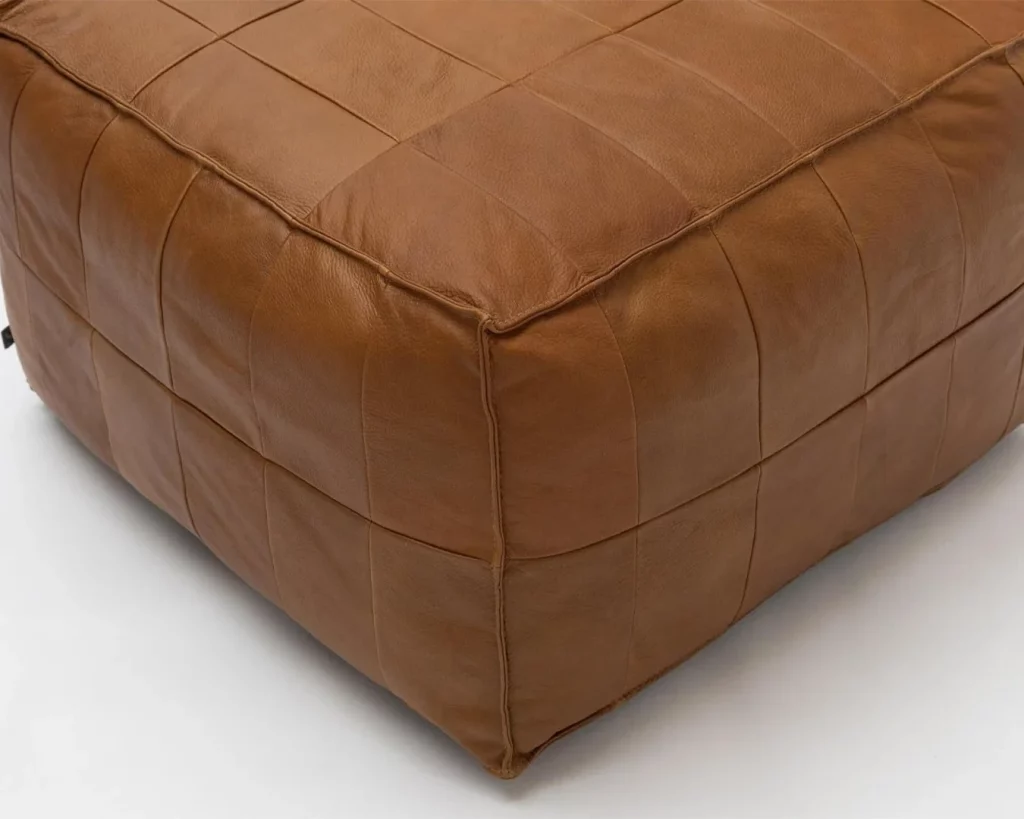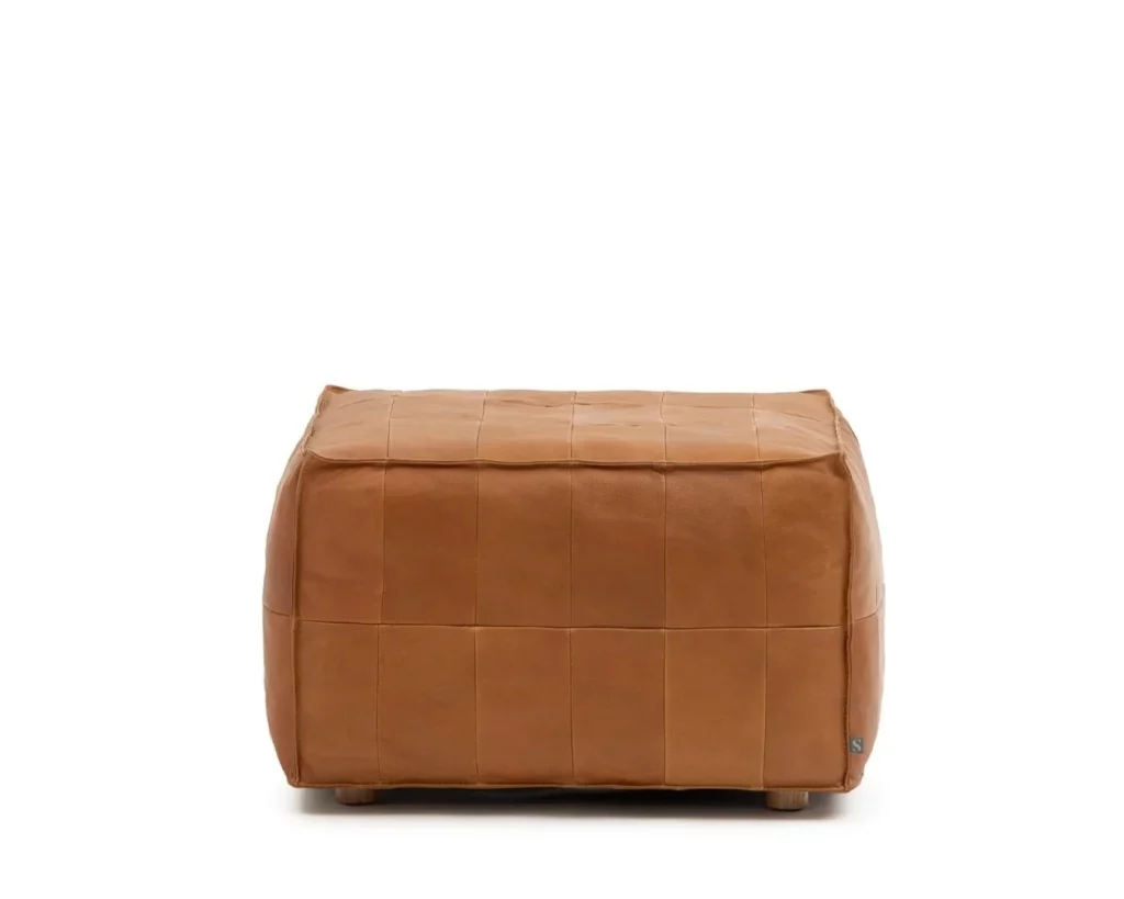 Tanbo ottoman is an exercise in waste reduction. By re-purposing the surplus leather cuts from regular sofa production a beautiful patchwork is created, reminiscent of the rice fields known in Japan as Tanbo. The foam filling is also sourced from production surplus, giving this stool an extremely low carbon footprint.