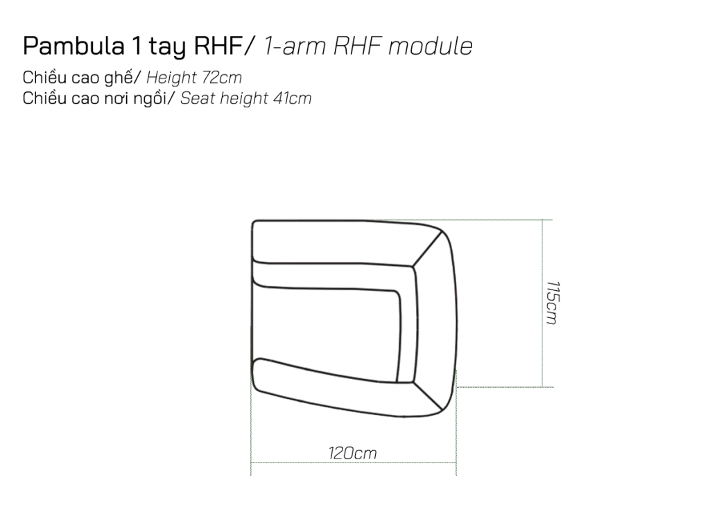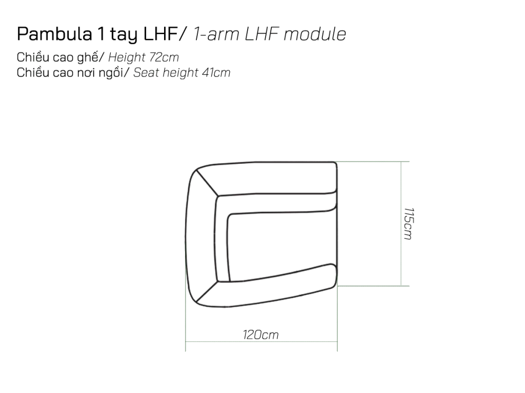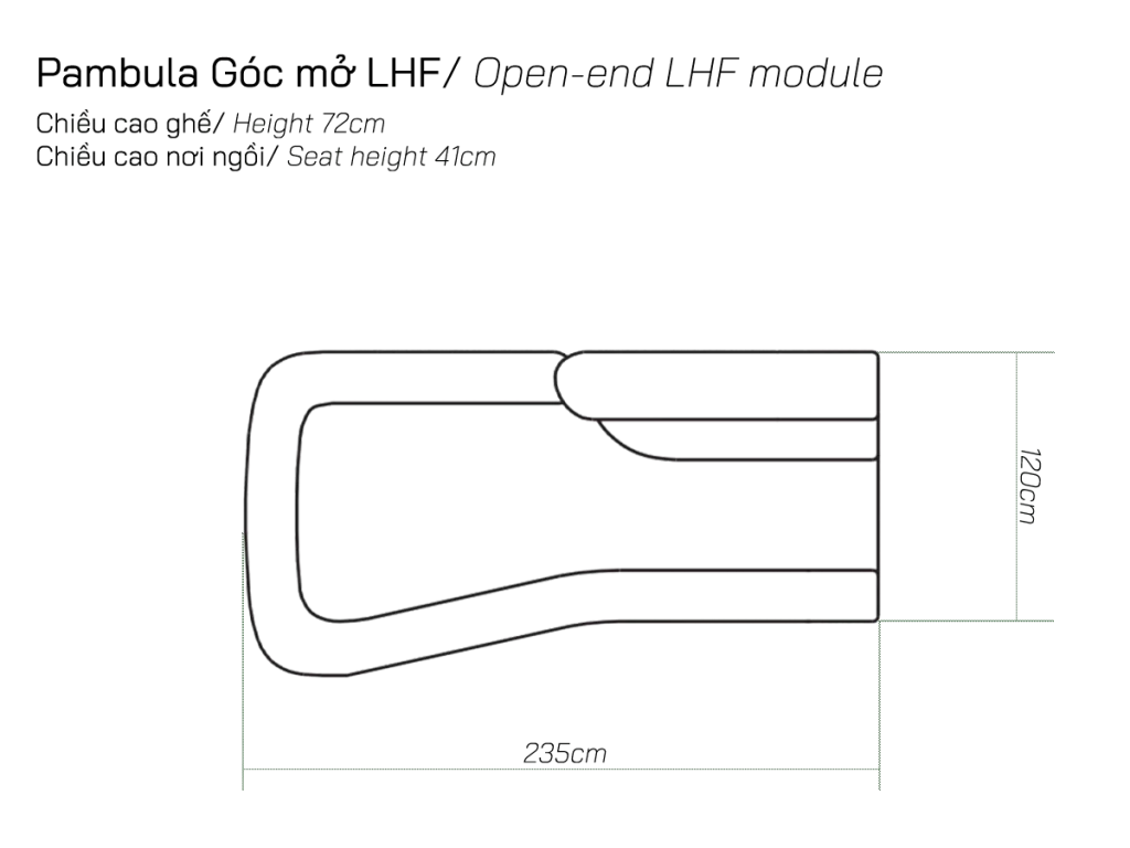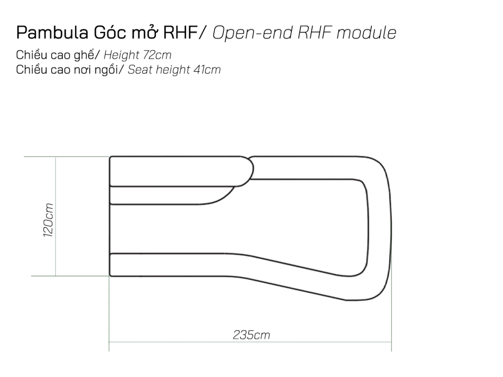 Vị trí LHF/RHF được xác định theo góc nhìn từ ngoài vào: LHF là góc bên trái và RHF là góc bên phải khi bạn đứng đối diện với sofa.