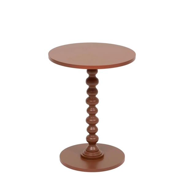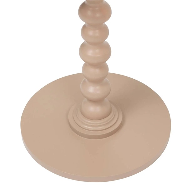 Chiếc bàn tròn này có chân đế được chạm khắc từ gỗ thông, hoàn hảo cho phòng khách của bạn, cung cấp không gian để đặt đồ dùng hoặc phục vụ đồ uống. Kích thước nhỏ gọn khiến nó trở thành lựa chọn lý tưởng cho những không gian hạn chế/ This round side table features a sculpted pinewood base and is perfect for your living room, offering space to place belongings or serve beverages. Its dimensions make it an ideal choice for small spaces