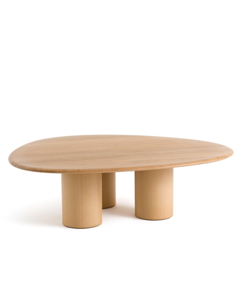 Chiếc bàn trà oval này có mặt bàn travertin tự nhiên và chân gỗ sồi nguyên khối. Chân bàn rộng mang lại sự vững chắc và nét đặc sắc, tạo điểm nhấn ấm áp và tinh tế cho phòng khách của bạn/ This oval coffee table features a natural travertine top and solid oak feet. Its wide legs provide stability and character, adding a warm and sophisticated touch to your living room