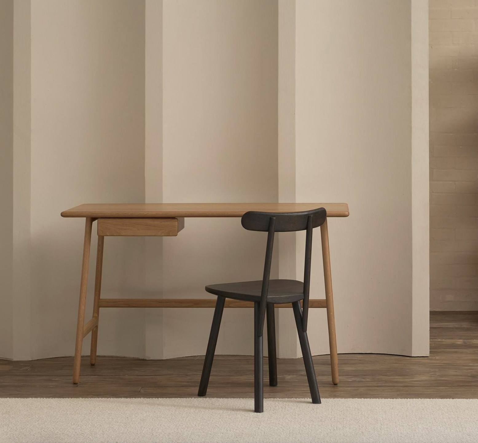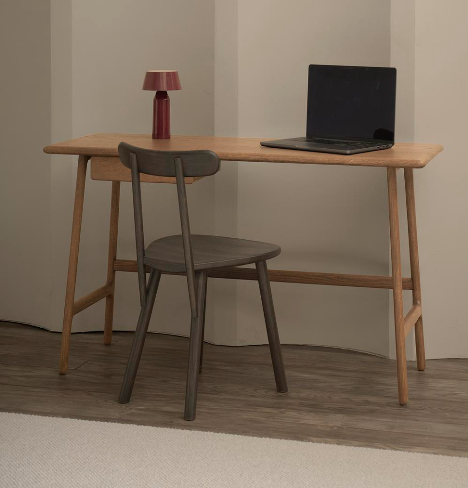 Một không gian làm việc nhỏ gọn và yên tĩnh tại nhà là khởi điểm cho chiếc bàn dễ thương này. Với dáng nhẹ nhàng, tối giản, nó hòa nhập tự nhiên mà không làm phiền không gian sống của bạn. Các cạnh bo tròn nhẹ nhàng mang lại cảm giác ấm cúng và thân thiện. Ngăn kéo được lót lớp bần Bồ Đào Nha tạo điểm nhấn tinh tế và chu đáo/ A compact, tranquil space for working at home was the starting point for this sweet desk. A light, minimal form to blend with and not intrude in your living space. Gently rounded edges and soft corners offer a welcoming homely feel. The drawer lined with a layer of Portuguese cork adds a thoughtful touch.