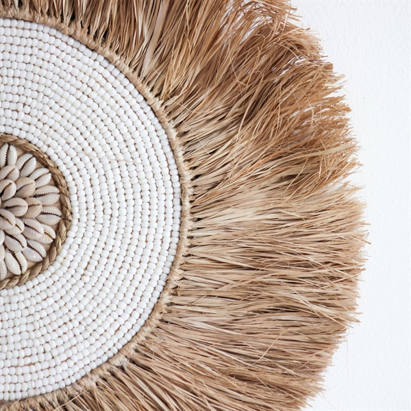 Chất liệu/ Chất liệu: Cườm, vỏ sò, cọ raffia & MDF/ Beads, shells, cọ raffia & MDF