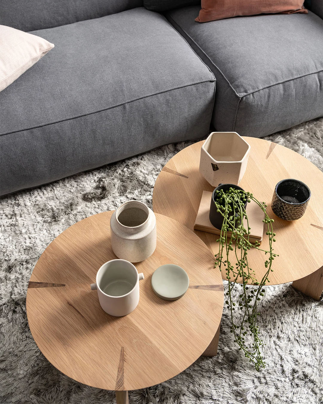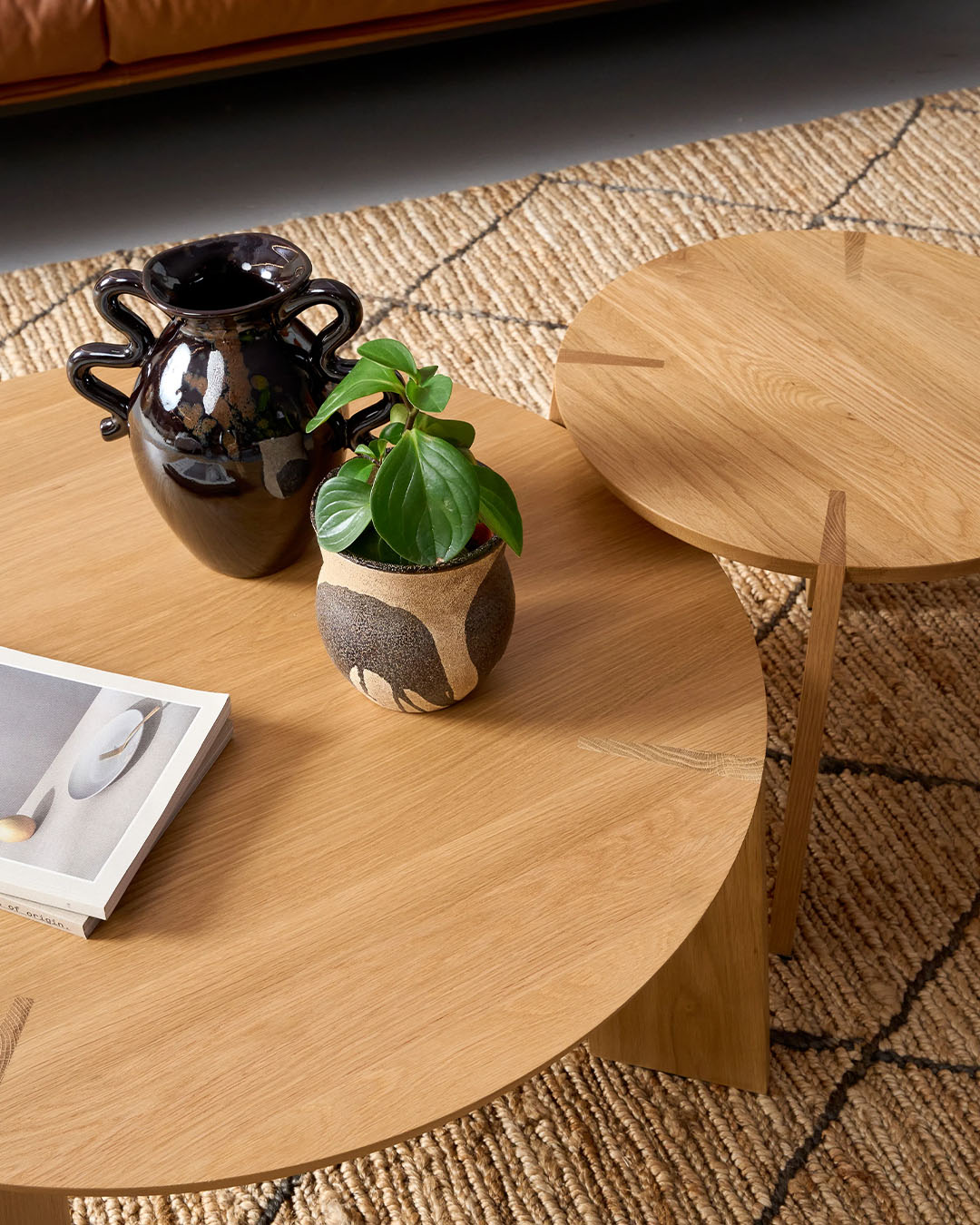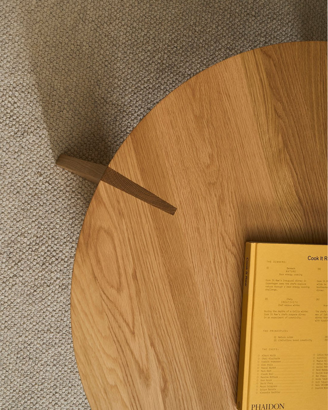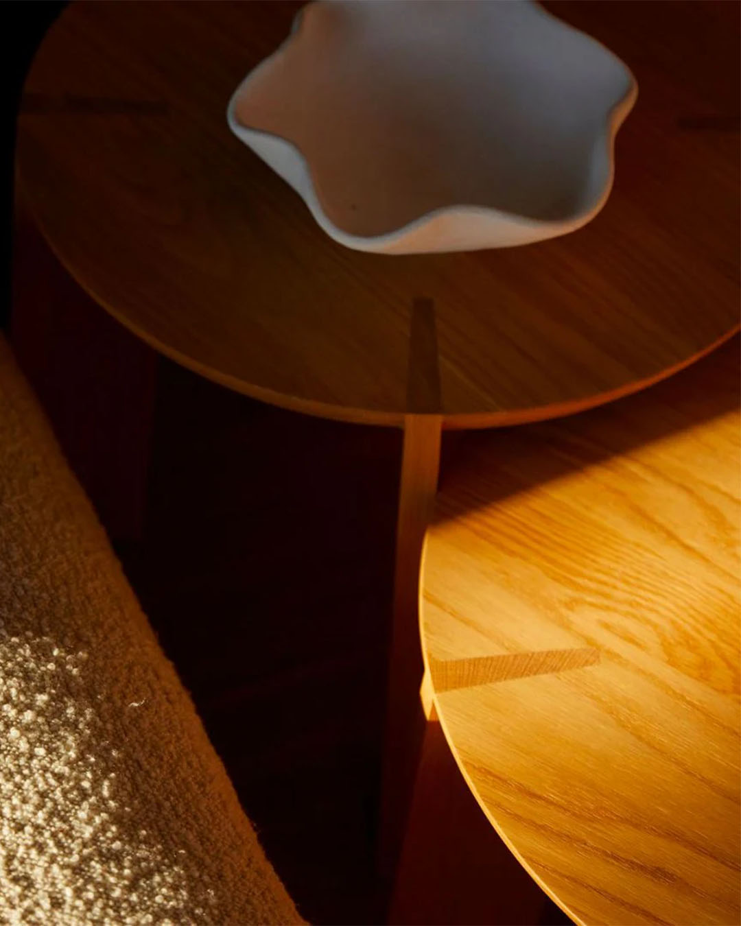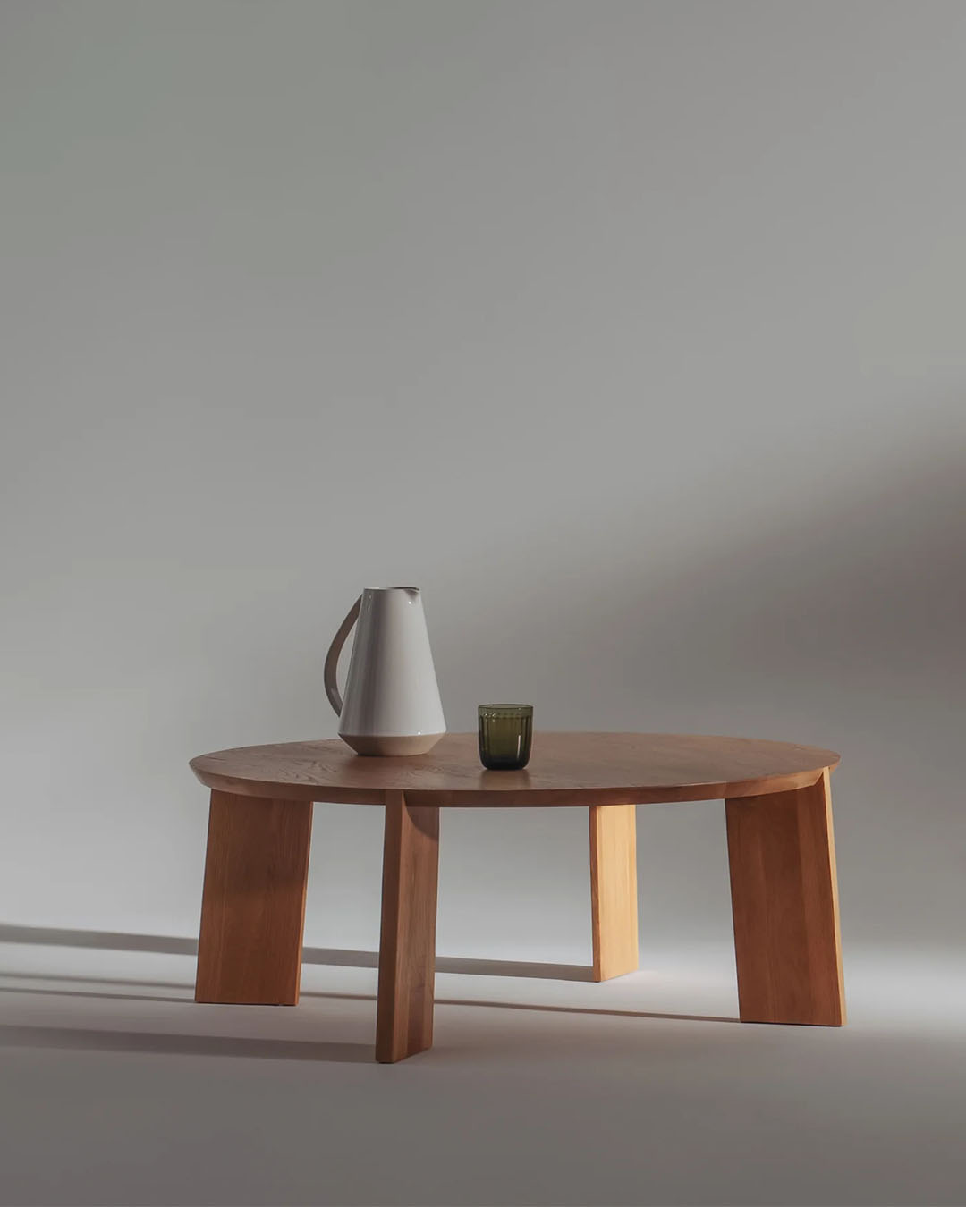 Kile là từ tiếng Na Uy có nghĩa là “nêm” — một kỹ thuật ghép nối mà Stine Aas đã khéo léo ứng dụng trong thiết kế bàn trà gỗ đơn giản này. Bốn chân bàn dạng tấm dường như giao nhau với mặt bàn tròn ở những góc khác nhau, tạo nên điểm nhấn độc đáo tại nơi hai vân gỗ hòa quyện/ Kile is the Norwegian word for wedge, a joining technique Stine Aas has used to great effect in this simple wood coffee table. The table’s four plank-like legs appear to intersect the circular tabletop at different angles, a feature expressed where you see the two grains meet.