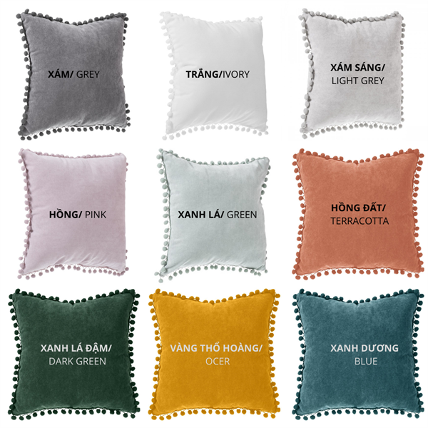 Mềm mại và nhiều màu sắc, dòng gối MOM của chúng tôi sẽ tạo thêm sự mềm mại cho ghế sofa hoặc giường ngủ. Những sợi bông được may xung quanh sẽ mang đến sự kỳ ảo cho nội thất của bạn. Ngoài ra, nó rất dễ bảo trì nhờ có khóa zip cho phép tháo rời.