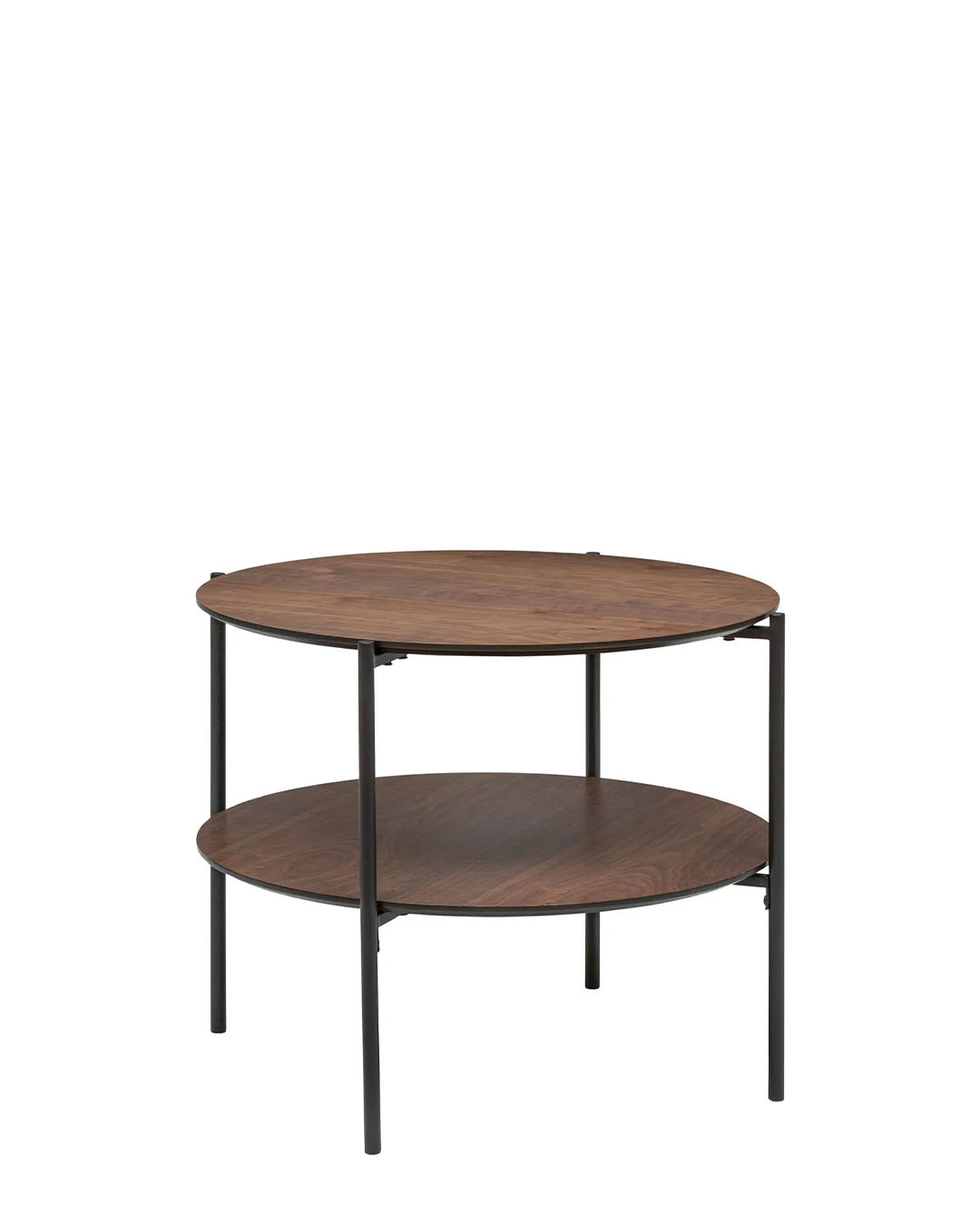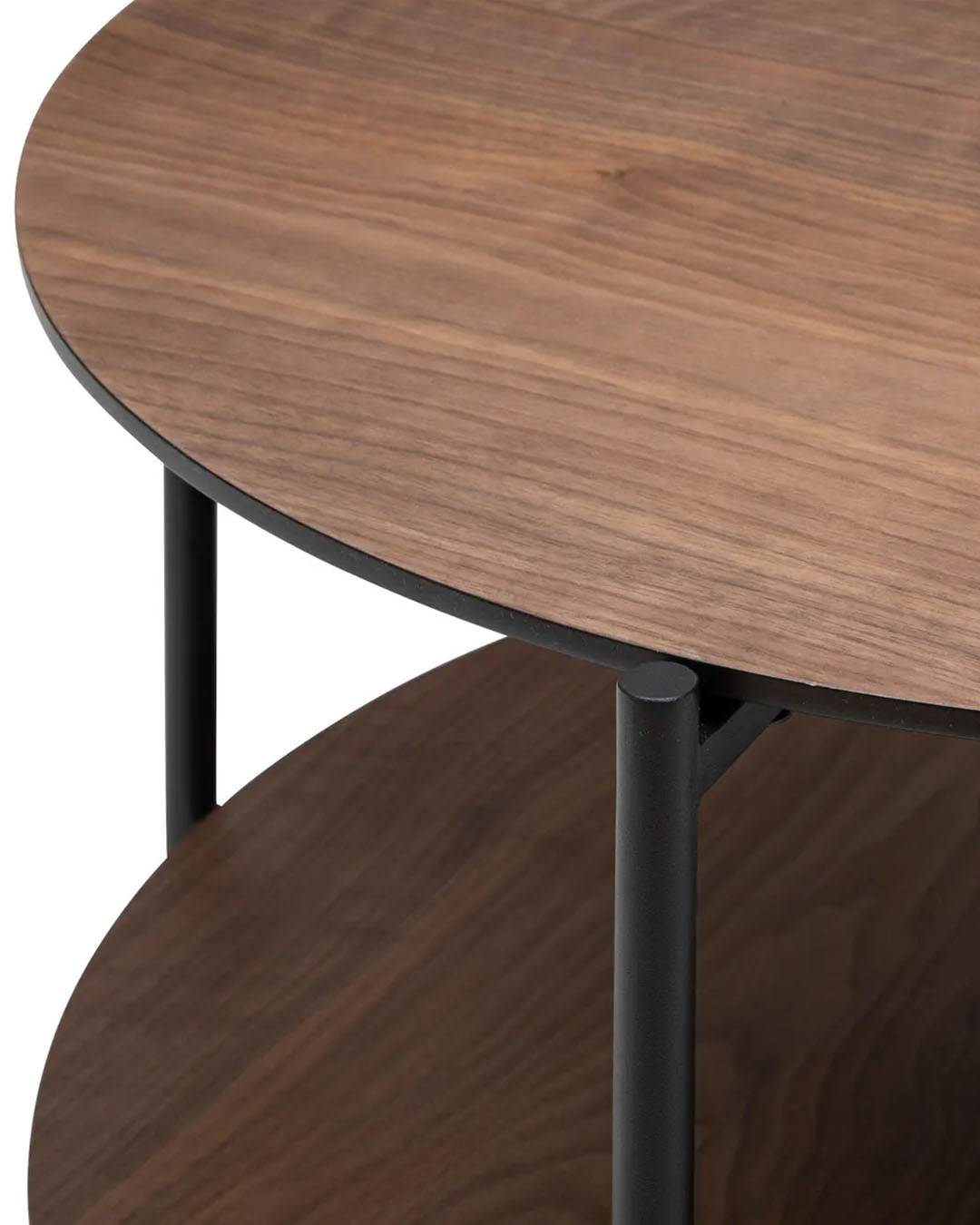 Được chế tác từ sự kết hợp giữa gỗ và kim loại, chiếc bàn trà này có hai mặt tròn hình trụ, với tầng dưới cung cấp không gian để cất tạp chí và sách/ Crafted from a blend of wood and metal, this coffee table features two cylindrical tops, with the lower level providing space