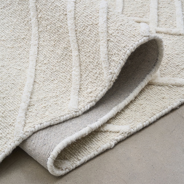 Một số chất liệu như len & bôn có nhiều sợi tơ và trong vài tuần đầu sử dụng có thể xuất hiện hiện tượng xù lông: điều này là hoàn toàn bình thường vì thảm đang “rụng lông” bằng cách thải ra lượng sợi dư thừa. Hãy loại bỏ lông xù bằng tay càng nhiều càng tốt và tuyệt đối không sử dụng máy hút bụi ở chế độ có chổi quay, vì điều này có thể kéo và làm rách sợi. Hiện tượng rụng lông này sẽ giảm dần theo thời gian/ Some materials, such as wool or cotton, are very fibrous, and during the first few weeks of use, pilling may occur: this is normal, as the rug is “shedding” by releasing excess fibers. Remove the lint as much as possible by hand, and do not use a vacuum cleaner with a brush setting, as this can pull and tear out the fibers. This shedding will gradually subside over time