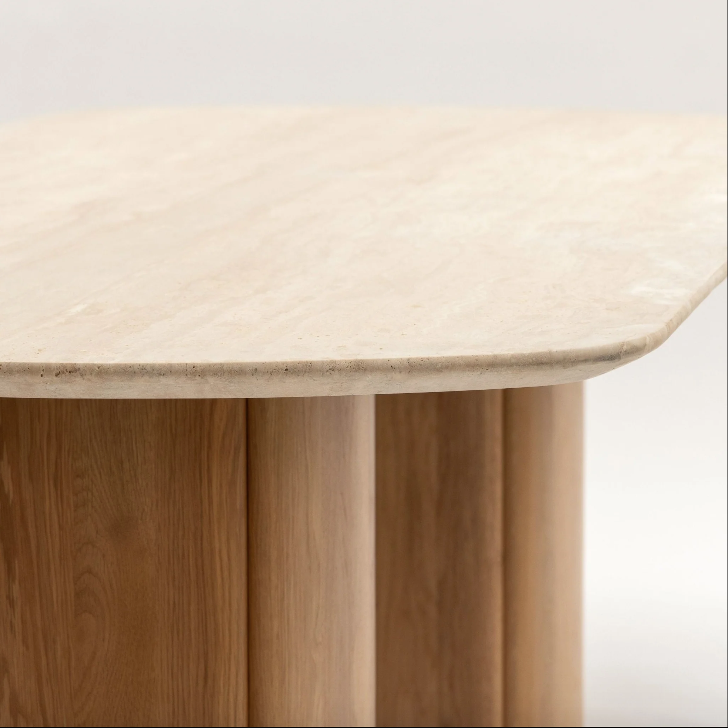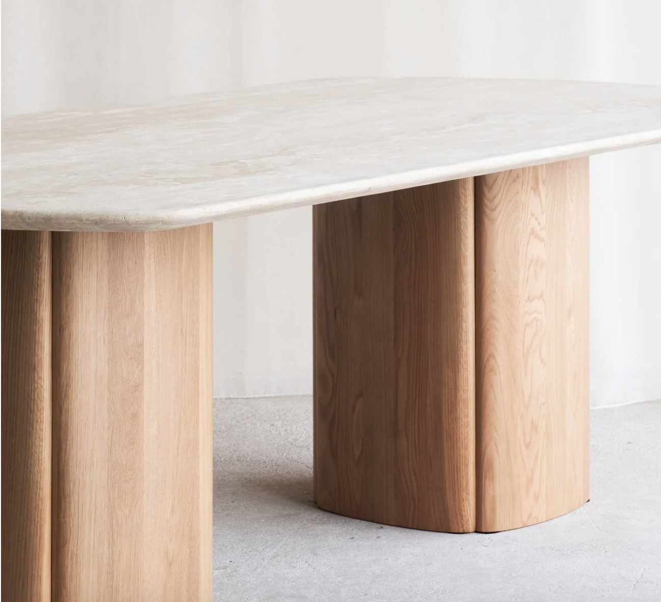 Tathra là nơi tụ họp, trò chuyện và vui chơi. Một món nội thất tinh tế, không phô trương hay gây phân tâm. Những đường nét mềm mại, điêu khắc của chân đế gợi nhớ đến thân cây cổ thụ, trong khi mặt bàn bằng đá có các cạnh bo mềm như được mài nhẵn bởi biển cả — một sự kết hợp hoàn hảo của các yếu tố tự nhiên/ Tathra is a place for gatherings, conversation, and play. A quiet statement piece with no vulgarity or distractions. The soft sculpted forms of the pedestal are reminiscent of ancient tree trunks, while the stone top has soft edges as if polished by the ocean – a true meeting of the elements.